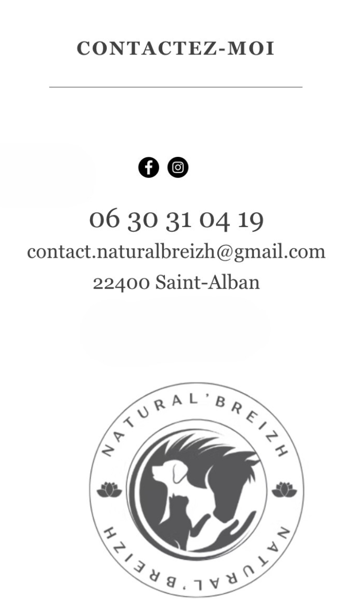 "Je fais suivre mes deux juments depuis 6 mois par Natural Breizh. Les consultations à domicile sont toujours très douces et les soins sont adaptés à chacune. Elles sont plus sereines. On sent que c’est du sur-mesure, fait avec amour des animaux.", anne-laure